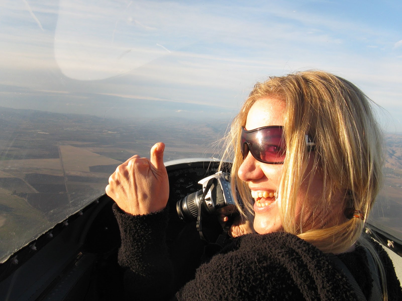 Julie, a commercial multi-engine pilot enjoyed her first glider ride: